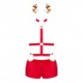 Découvrez le costume sexy Ms Reindy de la marque Obsessive, qui saura faire monter la température de votre soirée d'hiver. Avec un harnais rouge réglable qui souligne magnifiquement les formes, une culotte féminine avec une coupe alléchante sur le derrière décorée d'un duvet blanc, et un bandeau frivole avec des oreilles de renne pour un look ludique et festif. Confortable à porter grâce à la fermeture sur le cou, cet ensemble ajoutera une touche chic et élégante à votre tenue.