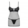 Un soutien-gorge à lacets type corset ajustable est incorporé à cette superbe nuisette au style BDSM qui mettra en valeur votre poitrine et surtout votre décolleté. Les bonnets sans armature sont en tulle opaque et maintenu entre eux par un fin laçage qui peut être plus ou moins serré pour faire apparaître le creux de vos seins ou les rapprochés. La nuisette elle-même est entièrement en résille large se terminant en une fine bande de dentelle sur le bas. Les bretelles sont également ajustables et le string noir assorti accompagne cette sensuelle nuisette.