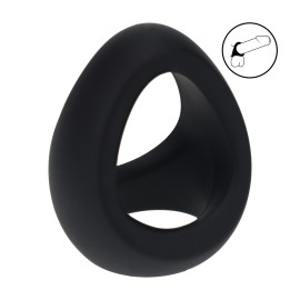 Le nom Tri O résume tout : trois ouvertures ovales taillées dans un seul bloc de silicone souple. La grande boucle ovale supérieure accueille confortablement la base du pénis, tandis que la boucle inférieure enveloppe le scrotum. La forme en goutte inversée, avec ses parois internes incurvées, crée une pression progressive et répartie qui maximise la tenue de l'érection sans effet de pincement. Ce design monobloc, sans jonction ni couture, garantit une sensation homogène et un port parfaitement confortable sur la durée.